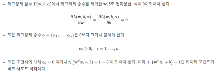 -> w와 b를 찾으면 SVM의 해를 구할 수 있음.