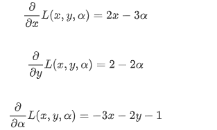 L(x,y,a)의 도함수가 모두 0이되는 지점 -> 최적화 문제의 해