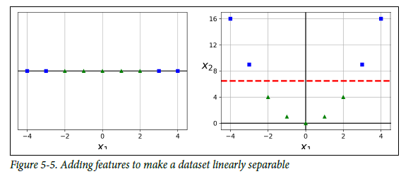 SVM에서는 커널트릭을 활용하여 실제로는 특성을 추가하지 않으면서 다항식 특성을 많이 추가한 것과 같은 결과 도출 가능