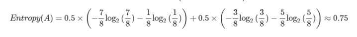 불순도(Impurity)를 수치적으로 나타낸 척도 엔트로피가 높다는 것은 불순도가 높다(=데이터가 올바르게 분류 X)는 뜻이고, 엔트로피가 낮다(=데이터가 올바르게 분류 O)는 것은 불순도가 낮다는 뜻.