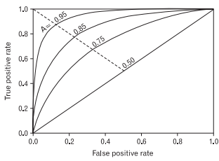 ROC-AUC : ROC curve의 아랫 면적 0.5~1.0 사이의 값 1에 가까울수록 좋은 성능을 나타냄
