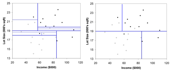 3) 분기를 지나치게 많이 한다면, train data에 과적합(overfitting)될 수 있음.