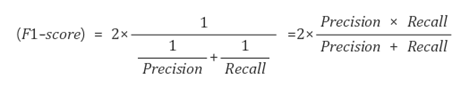 F1-score : Precision과 Recall의 조화평균. 두 지표를 균형있게 반영함