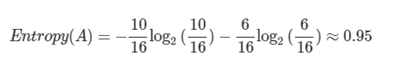 엔트로피가 1 ? 한 범주 안에 서로 다른 데이터가 정확히 반반 있다 경우