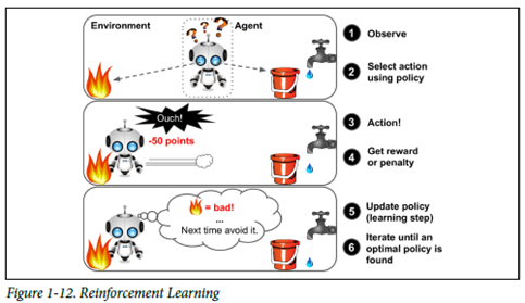 환경을 관찰해서 행동을 실행하고 그 결과로 보상 혹은 벌점을 받음