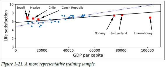 대표성이 없는 훈련 데이터를 사용했을 경우, 모델이 정확한 예측을 하지 못할 수 있다! 이런 내용들을 접할 때마다 응통 표본추출이론 이런 수업을 들어보고 싶다는 생각이 들지만... 대체로 생각에만 머물게 되네요(ㅋㅋㅋㅋㅋ쿠ㅜㅜㅜ)