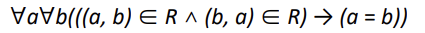 (a,b)가 R에 속해 있고, (b,a) 도 R에 속해있다면, a = b 라는 관계