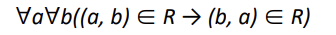 순서쌍 (a,b)가 R에 속해있다면, (b,a)도 R에 속해있어야 한다는 관계