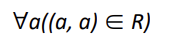 집합 A에 속한 원소 a에 대해 집합 R에 (a,a)의 순서쌍이 속한 관계