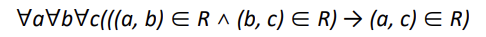 (a,b)가 R에 속해 있고, (b,c)도 R에 속해 있다면, (a,c)도 R에 속한 관계