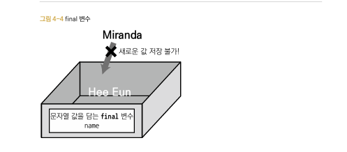 • final 변수에는 새로운 값을 저장할 수 없습니다.