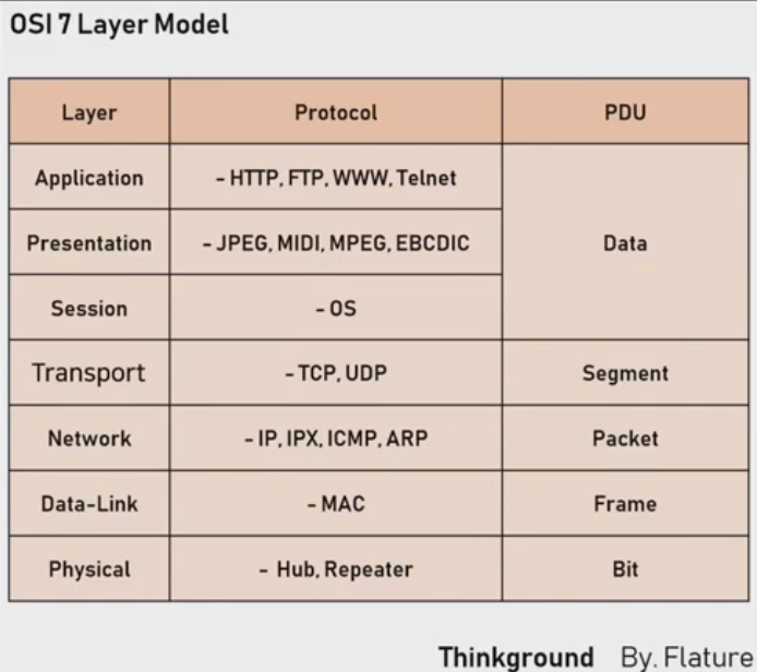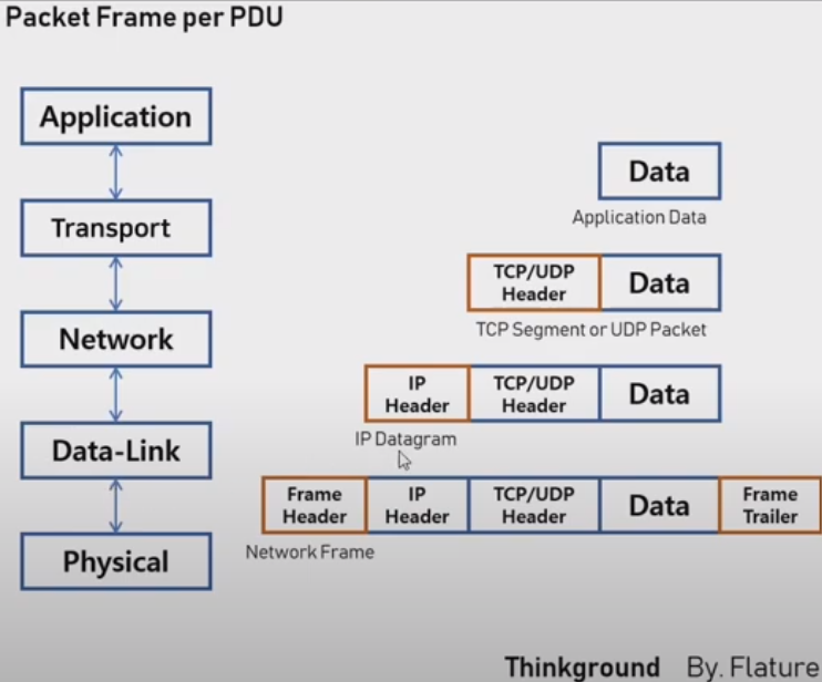 - PDU(Protocol Data Unit) : 각 계층 별 데이터 전송 단위