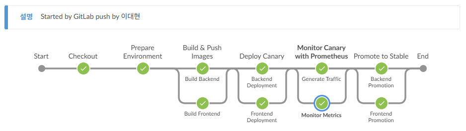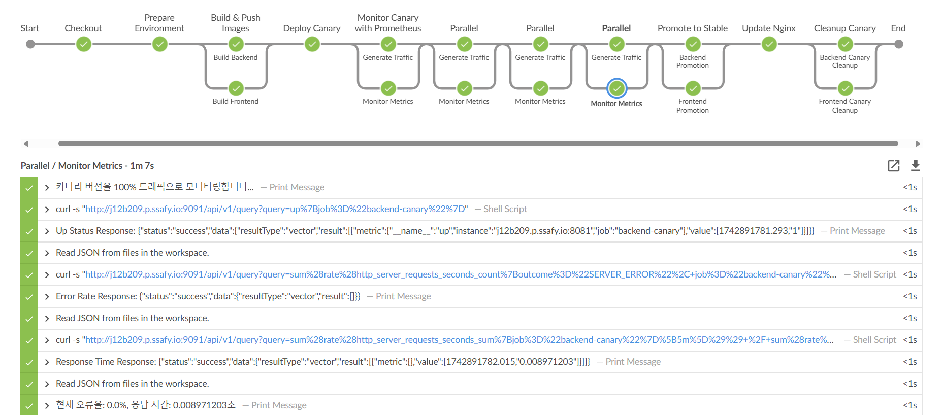 이와 같이, Jenkins, Nginx, 그리고 Prometheus를 활용한 자동화된 파이프라인 덕분에 단일 EC2 환경에서도 안정적이고 점진적인 Canary 배포를 구현할 수 있었다.