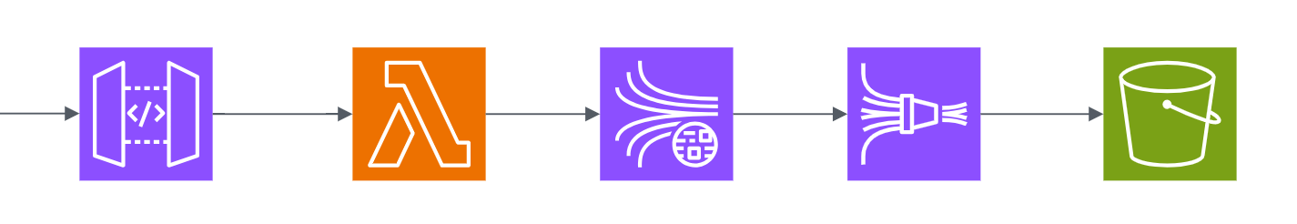 구성은 간단합니다. Lambda가 API Gateway에 들어오는 요청을 트리거해서 Kinesis로 보내주면, Data stream(수집) => Firehose(처리 및 전송)를 거쳐 S3에 저장됩니다.