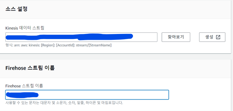 찾아보기 버튼을 눌러 위에서 생성한 kinesis data stream의 arn을 넣어줍니다.