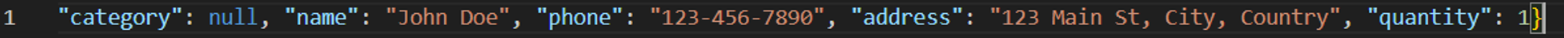 required_fields = ['id', 'title', 'price', 'category', 'name', 'phone', 'address', 'quantity', 'item_id', 'item_name']