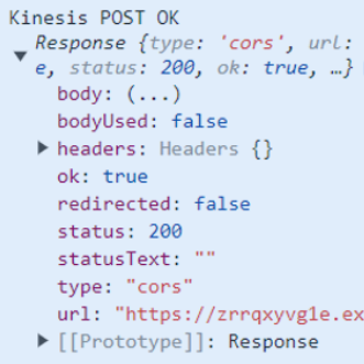 console log로 응답 데이터를 찍어보니 Lambda에서 데이터 전송 성공 시 반환하는 메세지가 뜬 것이 확인됐습니다.