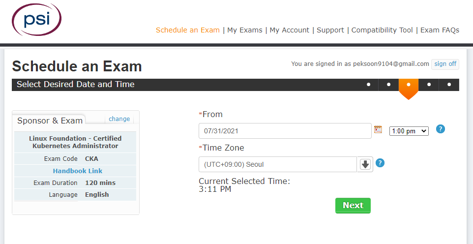 결제 후 약 2시간이 지나야 Exam Date : Schedule 버튼이 활성화 됩니다.