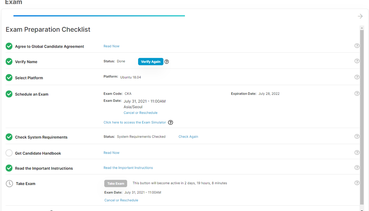 시험 전에 언제든지 Verify Again으로 정보 수정가능합니다.