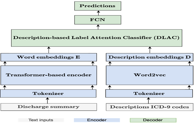 a. Discharge summary -> transformer-based encoder : E
