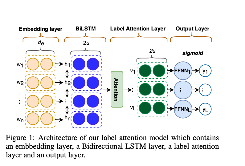 b. Label specific vector : 특정 라벨과 관련된 중요한 clinical text fragments를 나타냄. 이 모델에서 label attention mechanism은 self attention mechanism을 이용하여 이 label specific vector를 학습함.