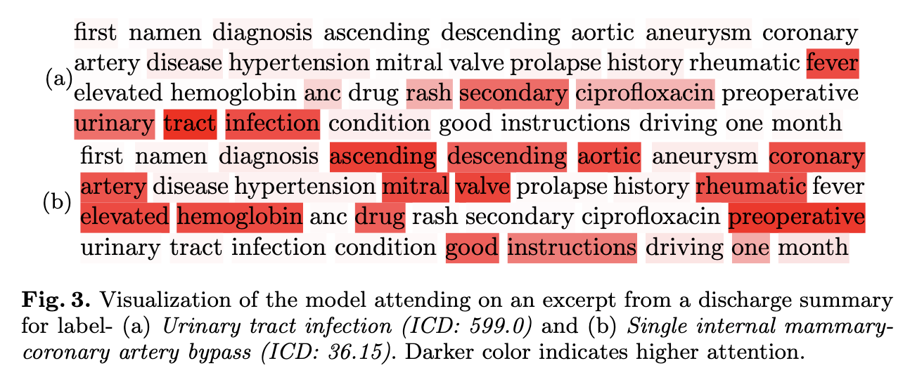 a. discharge summary sample : 여러개의 ICD code와 관련 => multi-label classification problem.