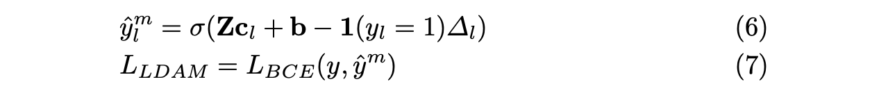 c. 이 외에도 code간의 imbalance한 frequency를 해결하기 위해서 label distribution aware margin loss function을 사용함.(LDAM)