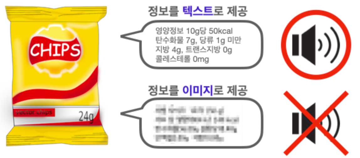 하지만 이미지속 글자를 인식하고 변환하는 과정에서 시간이 소요되기 때문에 텍스트로 작성되어 있는 경우와 비교했을 때 정보에 접근하는데 시간이 더 걸리게 된다.