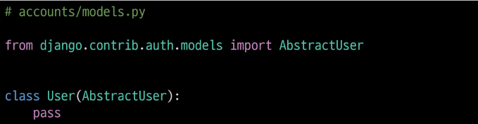 이제는 Django의 권장사항을 하나 따라야 하는데, Django에서 기본적으로 제공하는 User model을 Custom해야한다. 그 이유는 내장 User model은 auth에 내장된 User 클래스를 사용하는데 이는 우리가 원하는 column을 이후에 변경하거나 추가하기 힘들기 때문에 최초에 CustomUsermodel을 만들어야한다. 결국 최초 언급했던 우리가 framework 덕분에 편하게 유저에 대한 데이터를 다룰 수 있지만 직접 수정할 수 없는 문제도 있다는 것이다. 그럼 어떻게 커스텀 하는지 알아보러 가보자.