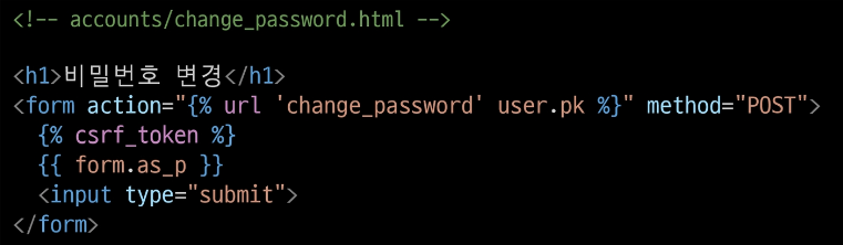 비밀번호 변경 시 사용자 입력 데이터를 받을 built-in Form