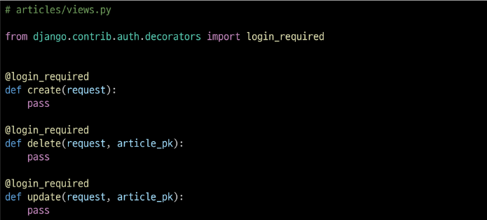 인증된 사용자에 대해서만 view 함수를 실행시키는 데코레이터