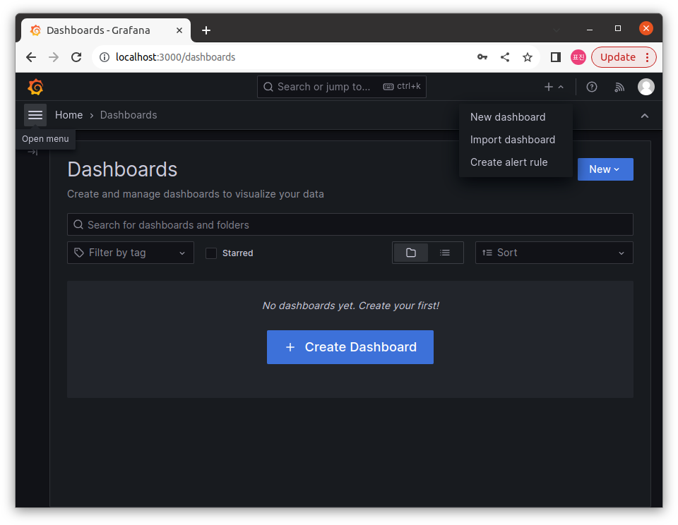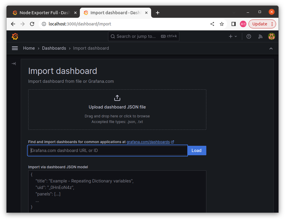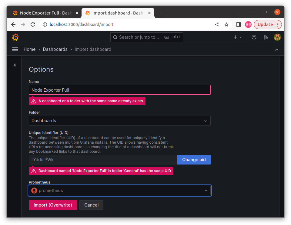 + >import dashboard 선택Find and import dashboards ~에서 원하는 템플릿 선택 (1860)Prometheus 지정해 대시보드 생성
