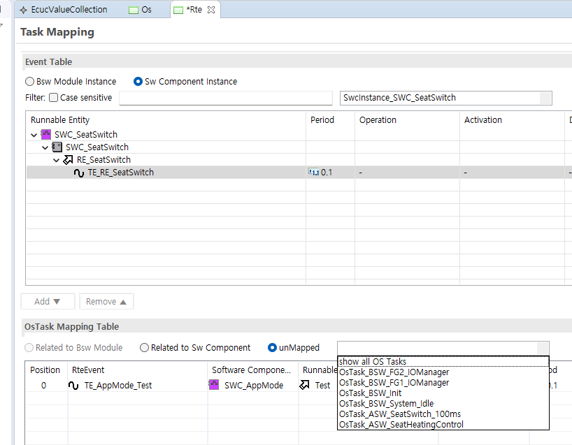 주기 설정은 따로 하지 않았지만 Rte가 100ms로 설정함