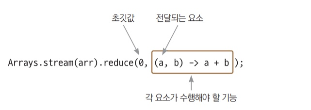 reduce() 최종 연산은 정의된 연산이 아닌 프로그래머가 직접 지정하는 연산을 적용한다.
