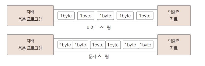 자료의 종류에 따라서 스트림을 구분할 때는 바이트 단위 스트림과 문자 다위 스트림으로 나눈다.