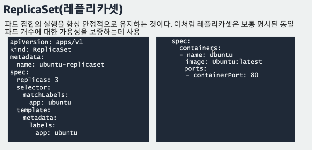 3개가 선택됨. 레플리카 셋을 팟을 그룹핑해서 관리함.?