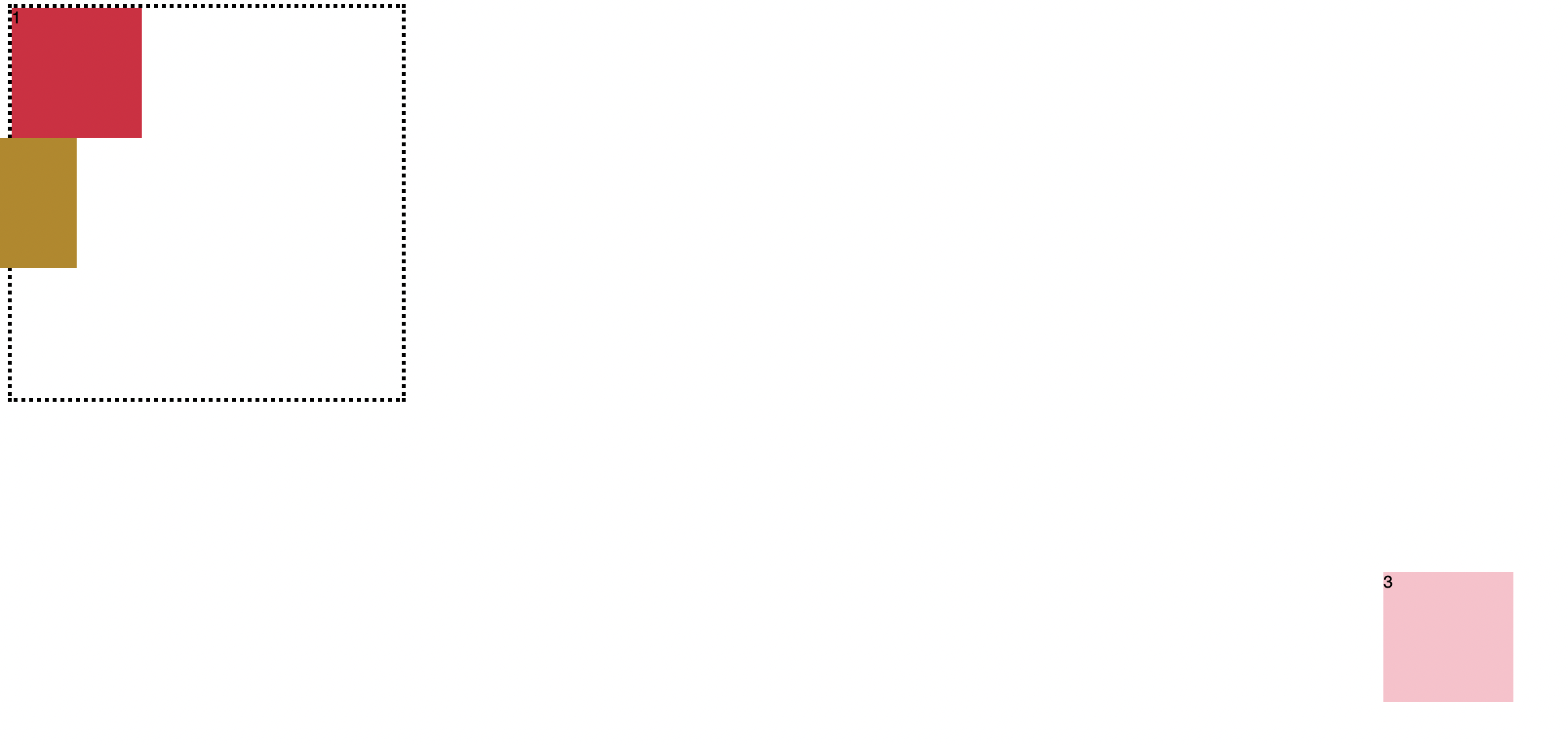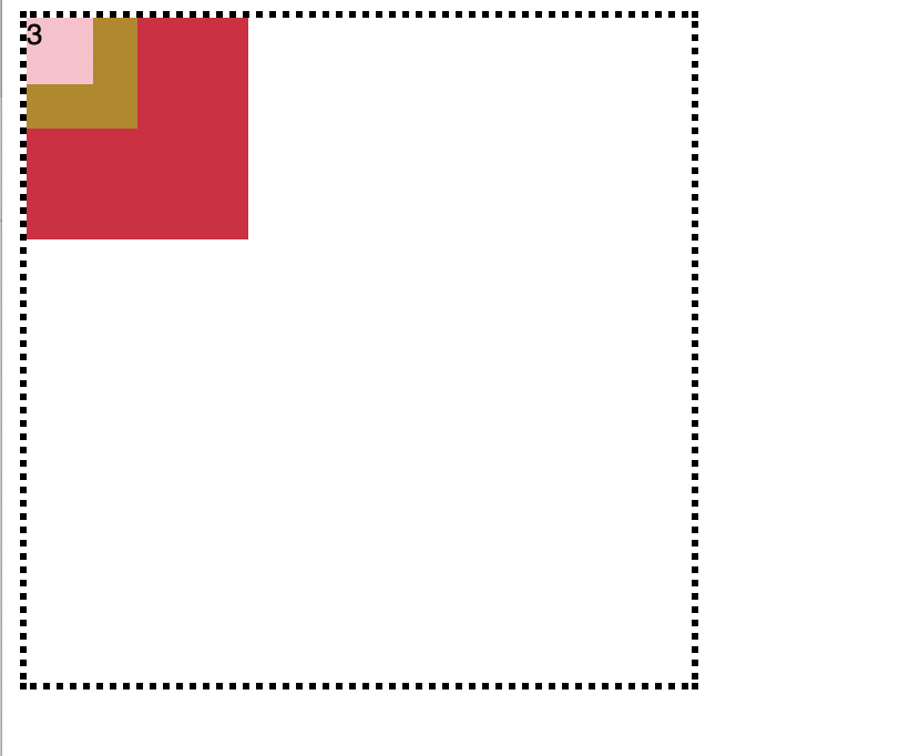 > parent 요소에 position: relative; 값을 부여하고, 각 다른 세가지 색상의 블록에 position: absolute; 값을 모두 부여 했을 때