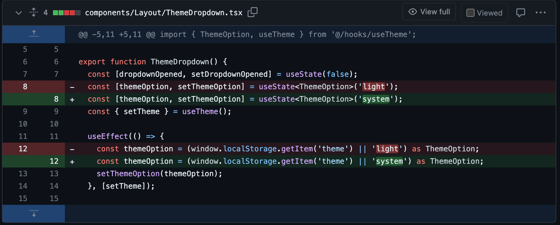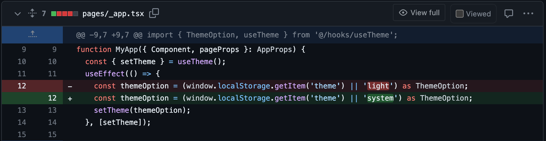 시스템 모드는 이미 구현되어 있어서 테마 상태를 초기화하는 코드만 수정했다.