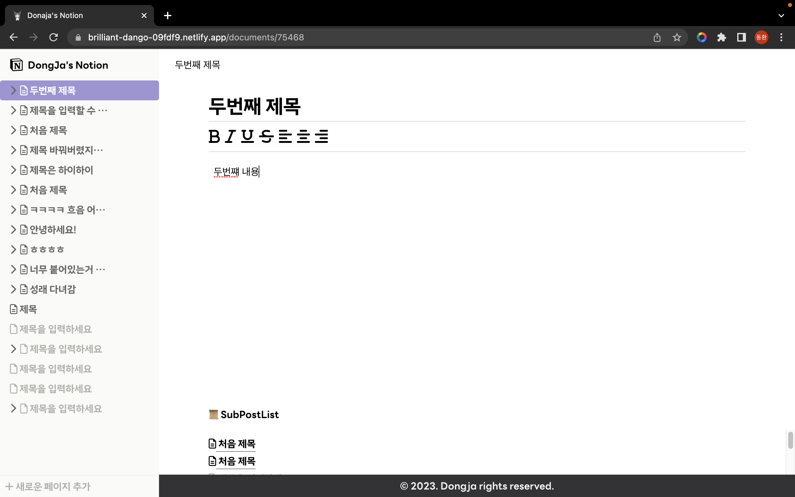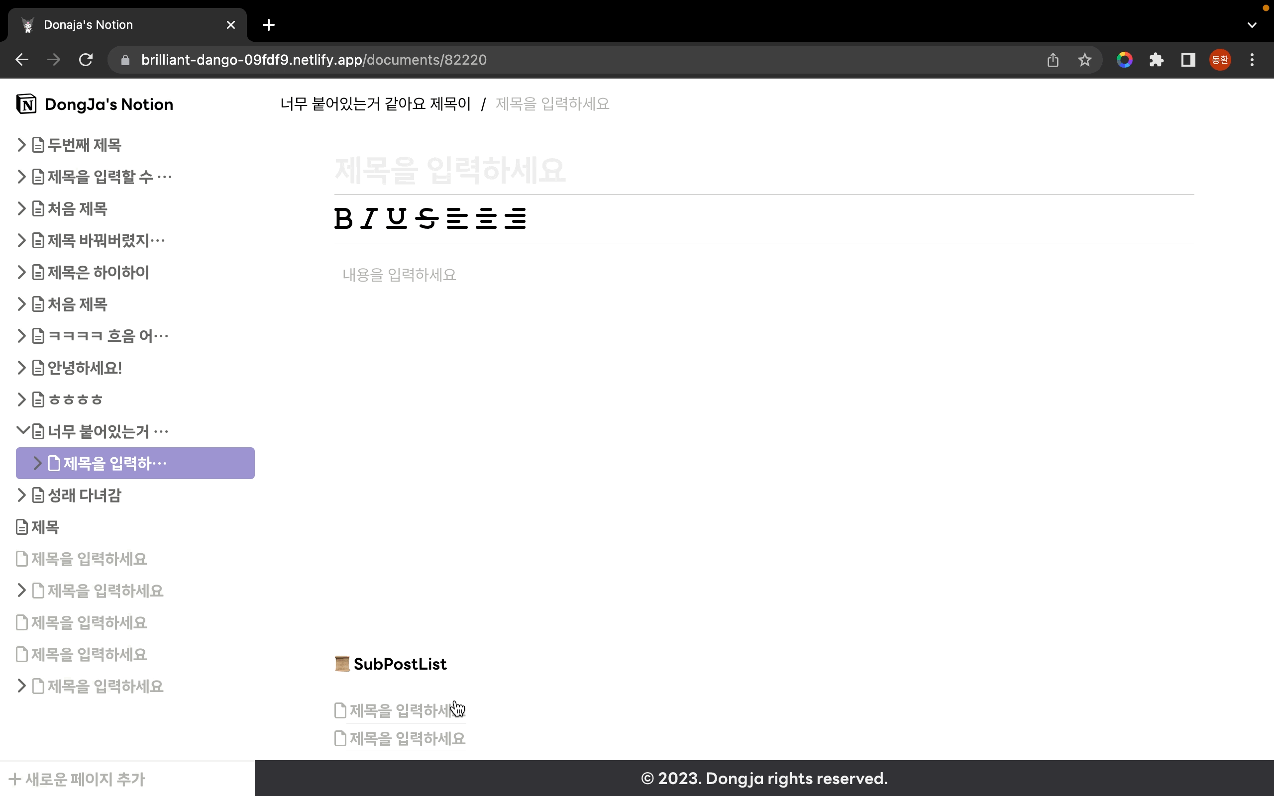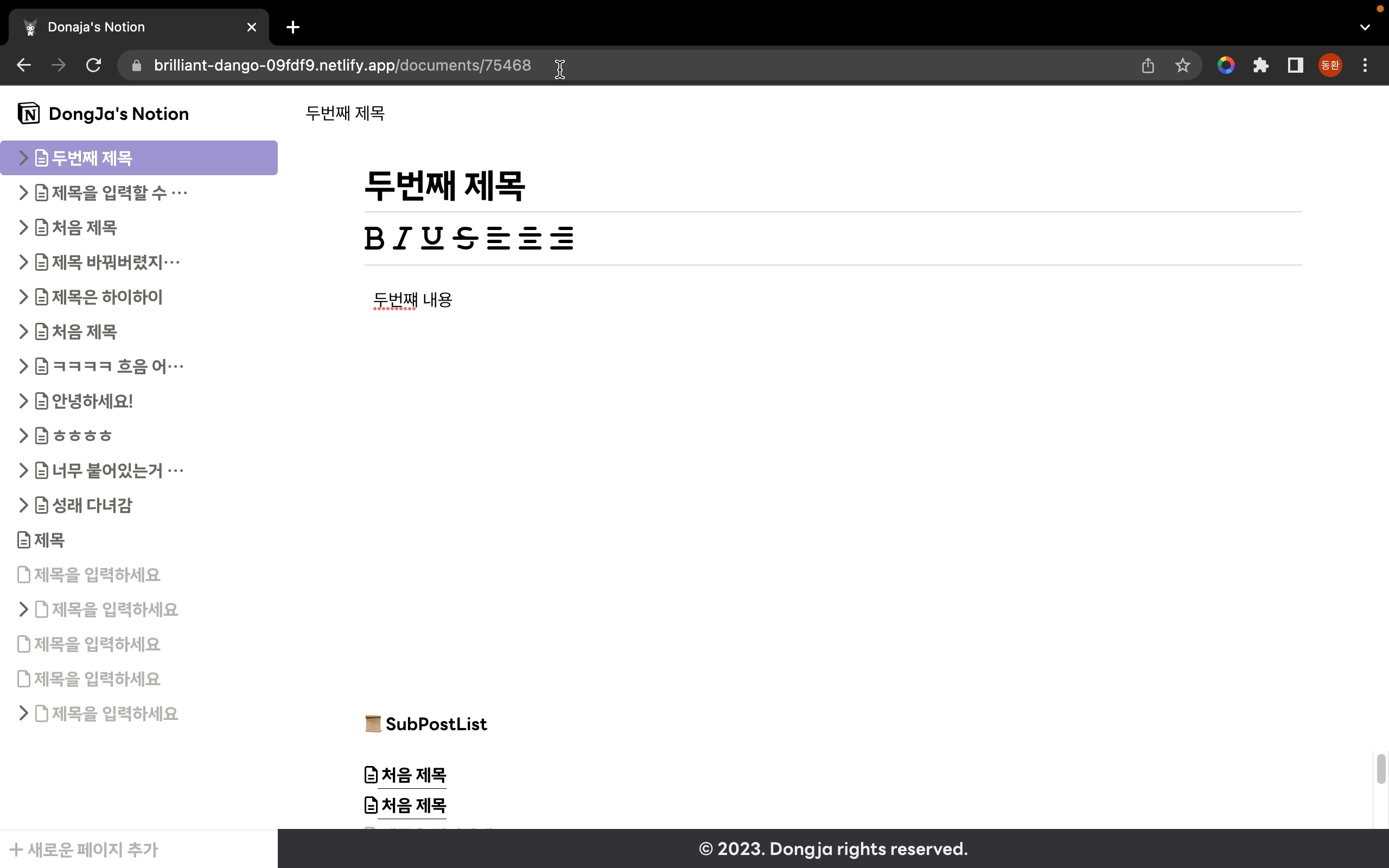 - 편집기 최하단에는 현재 편집 중인 Document의 하위 Document 링크를 렌더링하도록 추가합니다.