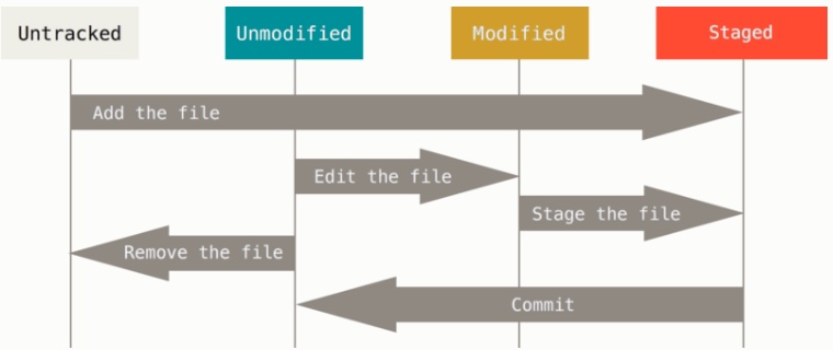 git은 파일을 committed, modified, staged 3 상태로 관리한다