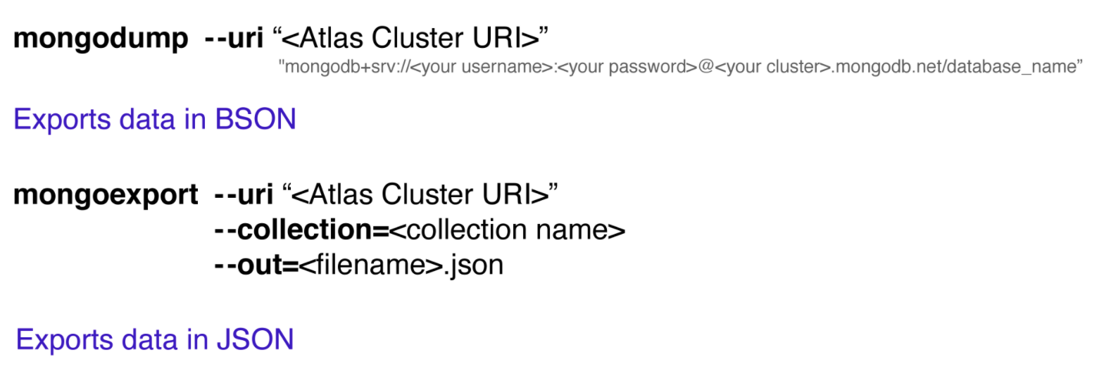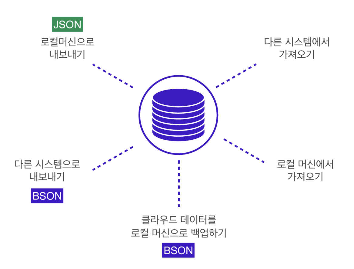 그 이유가 단순히 백업 저장을 하기 위해서라면 가볍고 빠른 BSON의 형태를 사용하는 편이 좋고 데이터를 내보낸 후, 조회를 하거나 출력을 해야한다면 사람이 읽기 쉬운 JSON의 형식이 바람직하기 하기 때문이다.