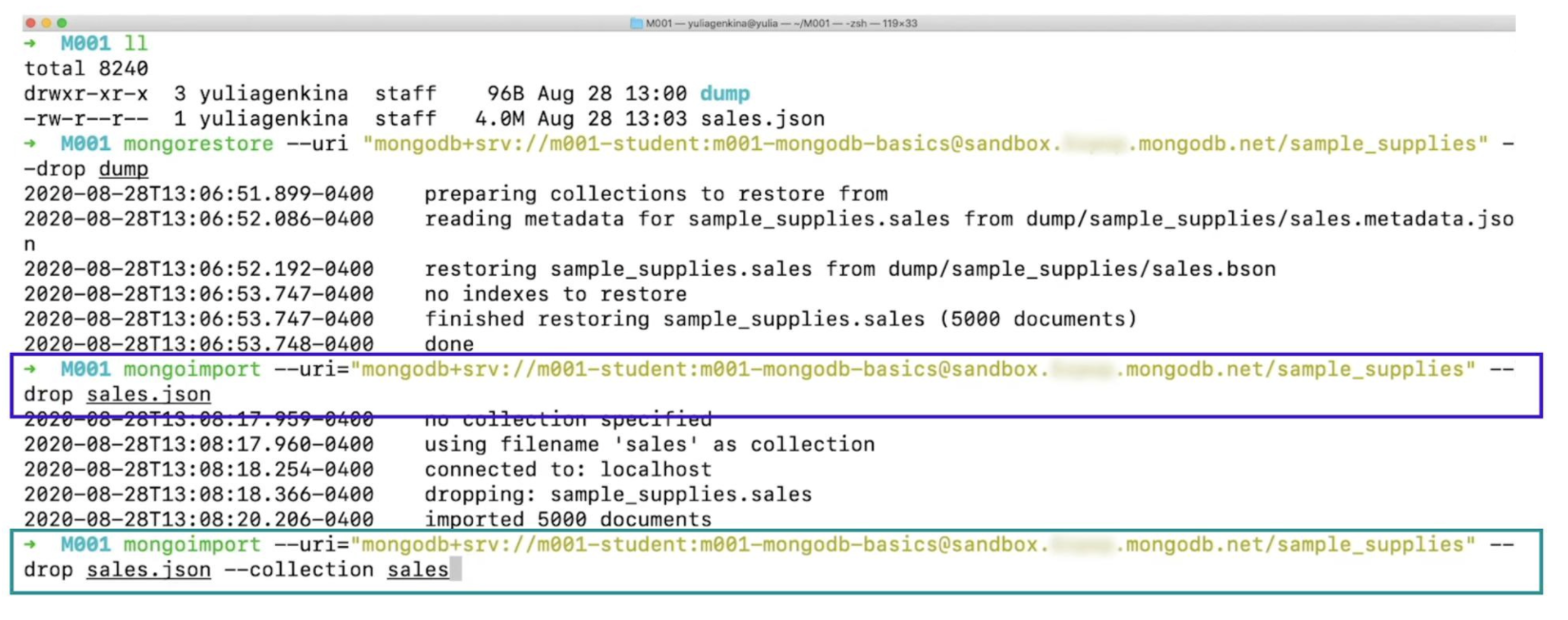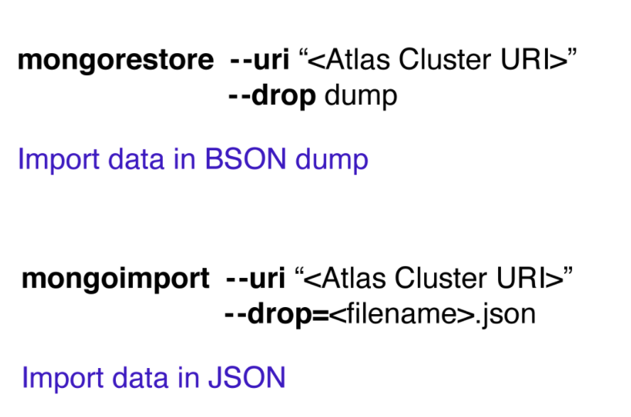 mongostore와 마찬가지로 mongoimport는 데이터베이스를 다시 아틀라스 클러스터로 가져올 수 있게 한다.