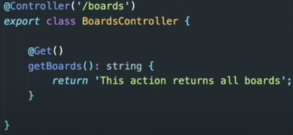 - 컨트롤러는 @Controller 데코레이터로 클래스를 데코레이션하여 정의한다