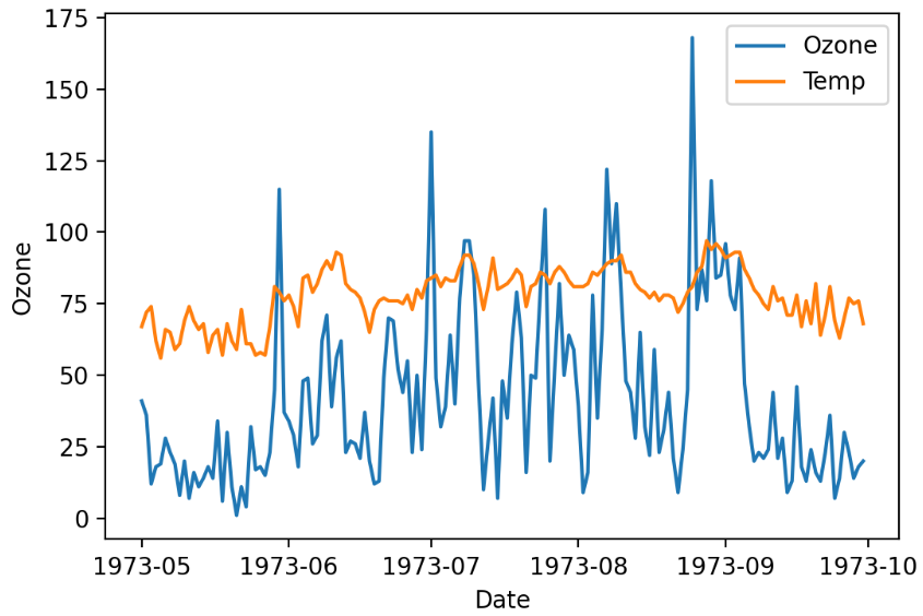 sns.lineplot(x='Date', y='Ozone', data=air, label='Ozone')