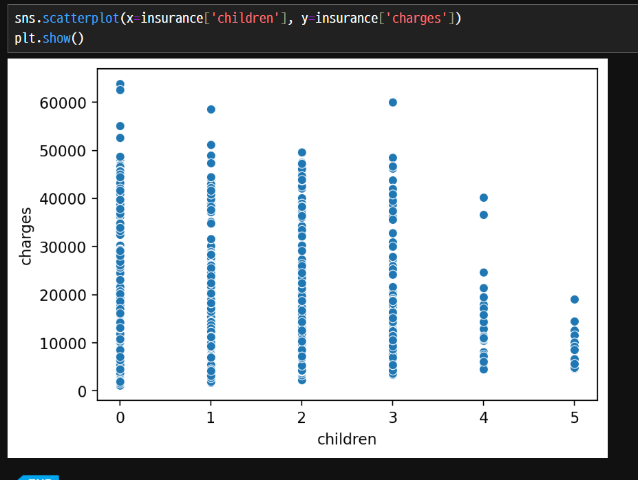 - 두 수치형 변수 관계는 산점도를 사용해 시각화한다.
