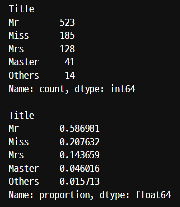 데이터프레임에서 데이터명.index, 데이터명.values 로 범주값과 범주값 개수에 접근할 수 있다.