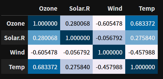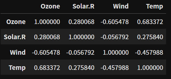 result = **spst.pearsonr**(air['Temp'], air['Ozone'])