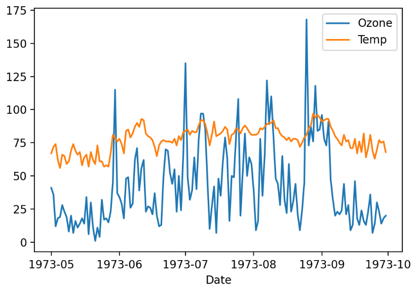 plt.plot('Date', 'Ozone', data=air, label='Ozone')