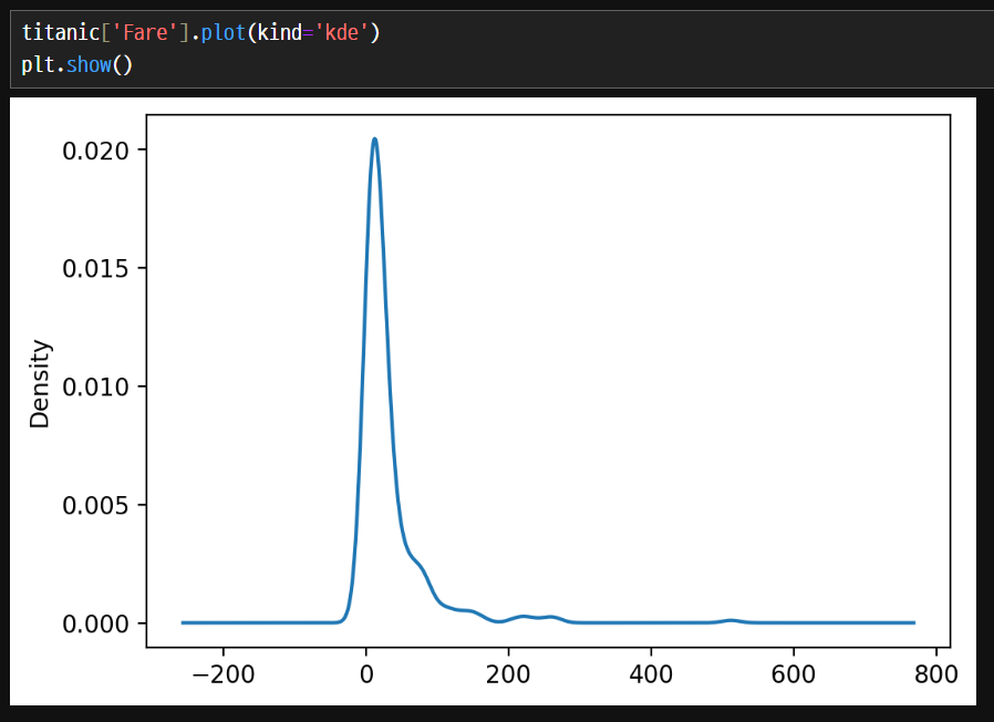 Pandas로도 plot() 메소드에서 kind매개변수를 kde로 지정해서 그릴 수 있다.