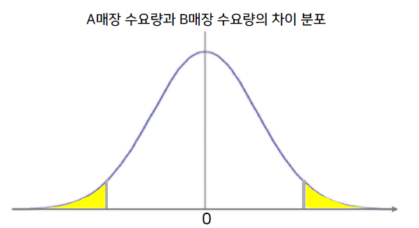 어느정도 차이에 따라서 차이가 크고 작다고 말할 것인가를 보면 상위와 하위의 각각 2.5%에 포함되면 차이가 있다고 판단한다.